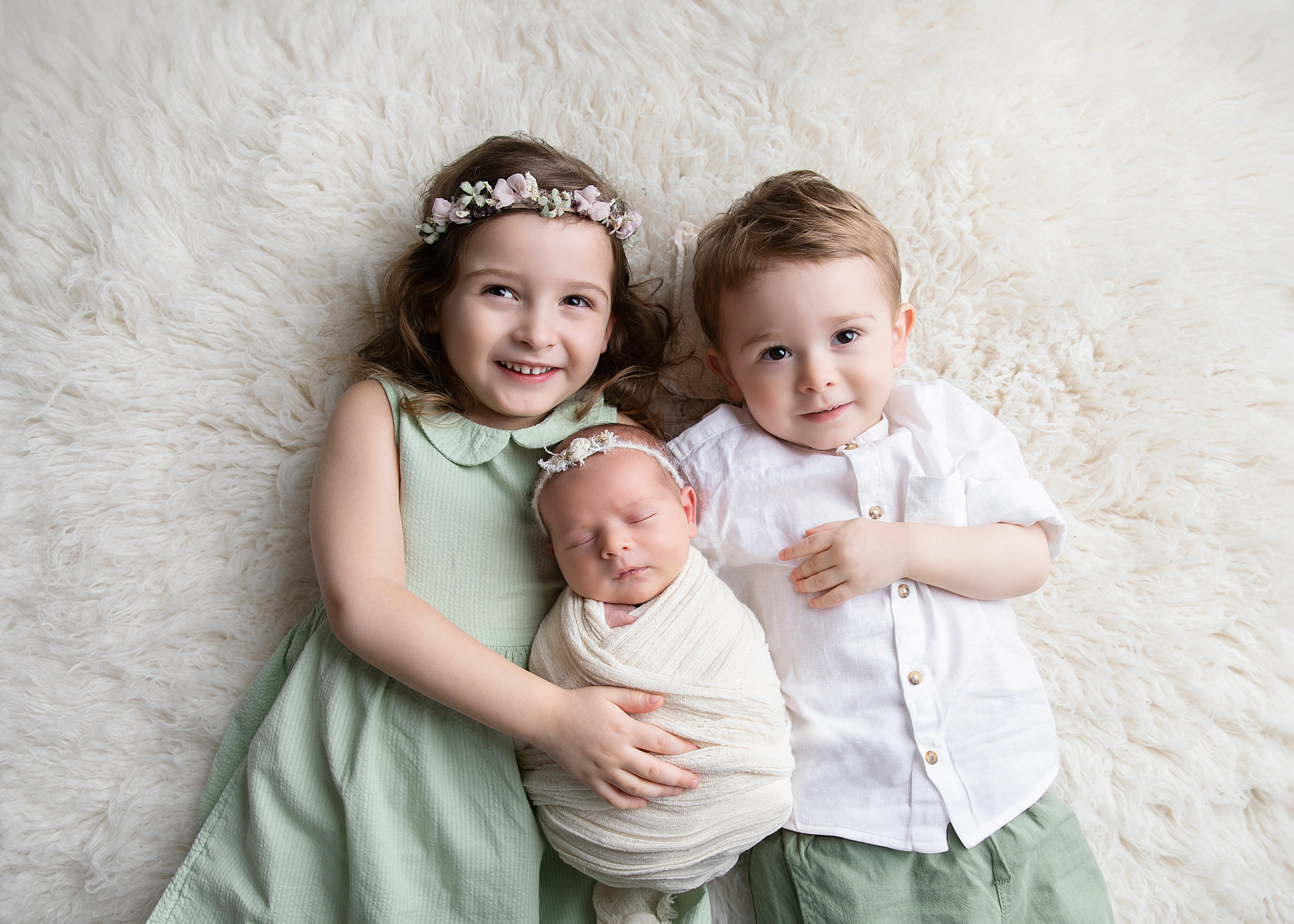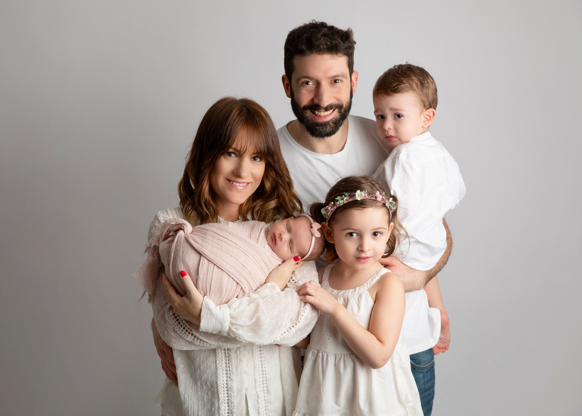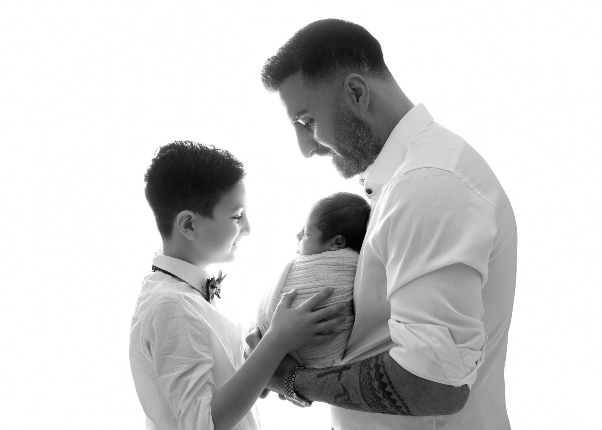 🔺 På studion finns allt som behövs för en nyföddfotografering, inklusive kläder och rekvisita. För att göra fotograferingen personlig kan ni ta med kläder för föräldrarna och eventuella äldre syskon. Det kan vara t-shirts, skjortor eller klänningar i svart, vitt eller andra färger, men det viktigaste är att alla familjemedlemmar matchar och är i samma färgskala för att skapa en enhetlig och stilfull look på bilderna.